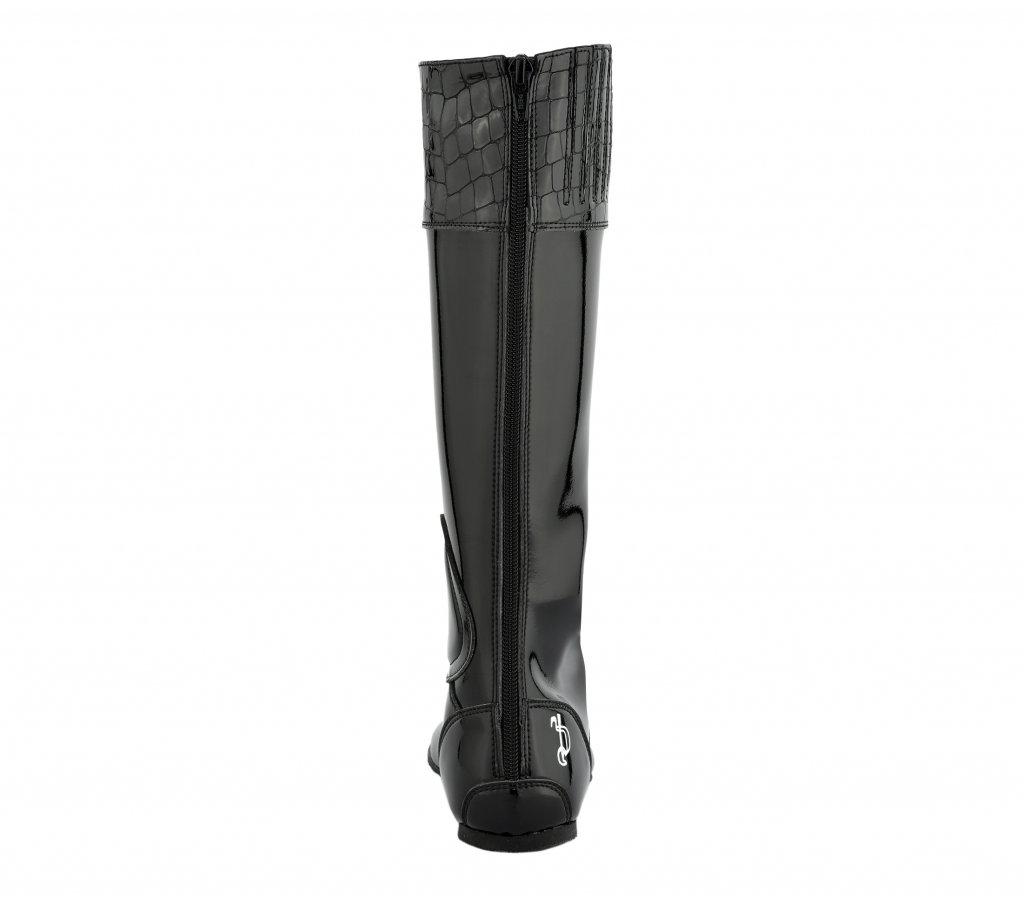 Boot in light patent microfiber, with excellent resistance to abrasion and bending. Leather insole and Vibram rubber sole to ensure better grip.